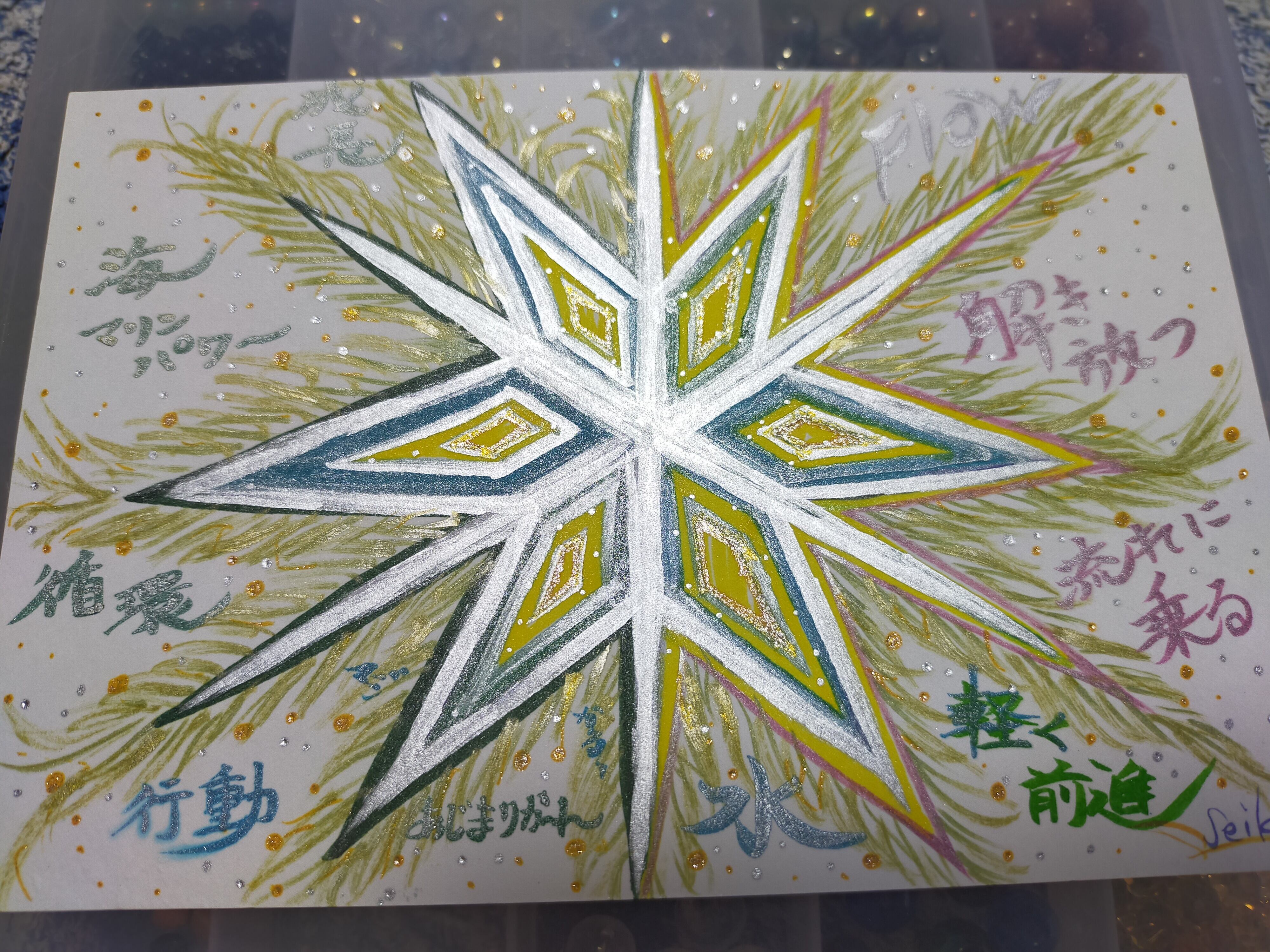 カラフルなビーズ&パワーストーンをインスピレーションワイヤーに通して、つなげて、輪っかにしています♪